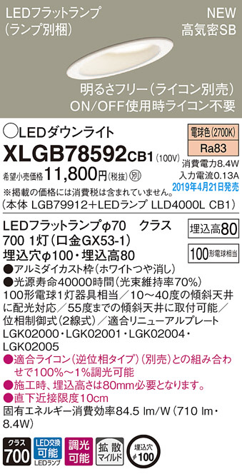 Panasonic LED ¥À¥¦¥ó¥é¥¤¥È XLGB78592CB1