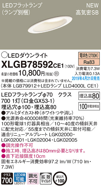 Panasonic LED ¥À¥¦¥ó¥é¥¤¥È XLGB78592CE1