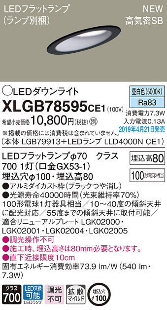 Panasonic LED ¥À¥¦¥ó¥é¥¤¥È XLGB78595CE1