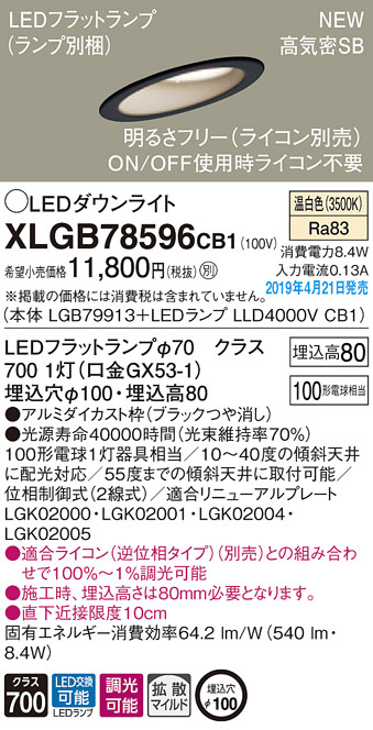 Panasonic LED ¥À¥¦¥ó¥é¥¤¥È XLGB78596CB1