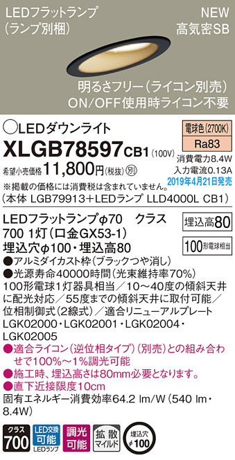 Panasonic LED ¥À¥¦¥ó¥é¥¤¥È XLGB78597CB1