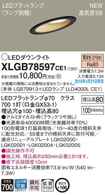 Panasonic LED ¥À¥¦¥ó¥é¥¤¥È XLGB78597CE1