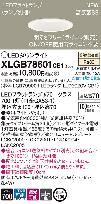 Panasonic LED ¥À¥¦¥ó¥é¥¤¥È XLGB78601CB1