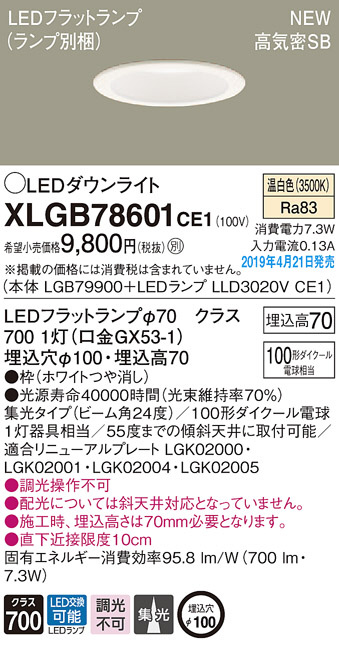 Panasonic LED ¥À¥¦¥ó¥é¥¤¥È XLGB78601CE1