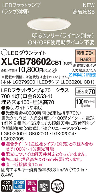 Panasonic LED ¥À¥¦¥ó¥é¥¤¥È XLGB78602CB1
