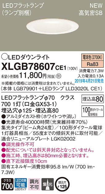 Panasonic LED ¥À¥¦¥ó¥é¥¤¥È XLGB78607CE1