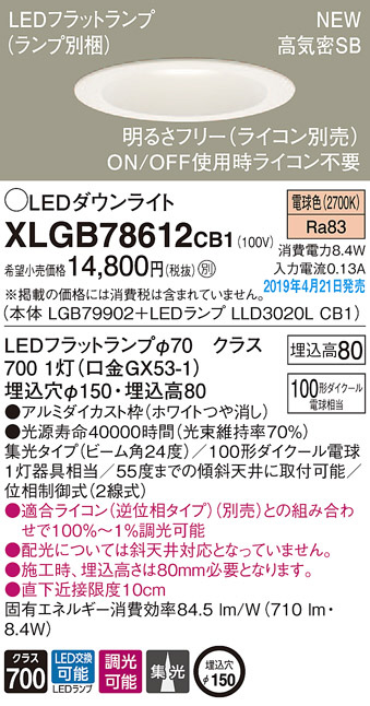 Panasonic LED ¥À¥¦¥ó¥é¥¤¥È XLGB78612CB1