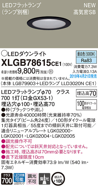 Panasonic LED ¥À¥¦¥ó¥é¥¤¥È XLGB78615CE1