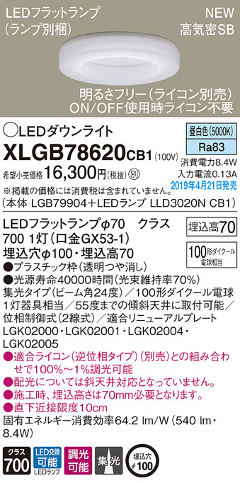 Panasonic LED ¥À¥¦¥ó¥é¥¤¥È XLGB78620CB1