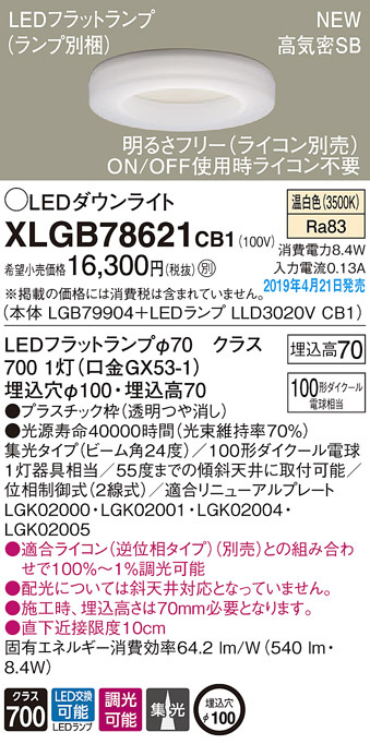 Panasonic LED ¥À¥¦¥ó¥é¥¤¥È XLGB78621CB1