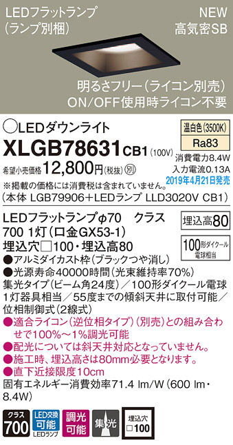 Panasonic LED ¥À¥¦¥ó¥é¥¤¥È XLGB78631CB1