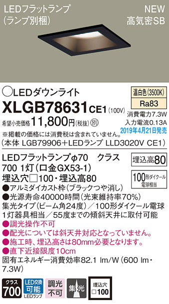 Panasonic LED ¥À¥¦¥ó¥é¥¤¥È XLGB78631CE1