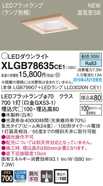 Panasonic LED ¥À¥¦¥ó¥é¥¤¥È XLGB78635CE1