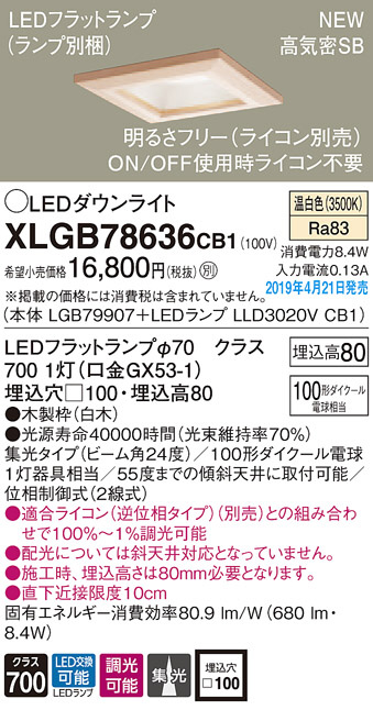 Panasonic LED ¥À¥¦¥ó¥é¥¤¥È XLGB78636CB1