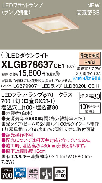Panasonic LED ¥À¥¦¥ó¥é¥¤¥È XLGB78637CE1