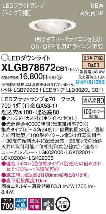 Panasonic LED ¥À¥¦¥ó¥é¥¤¥È XLGB78672CB1