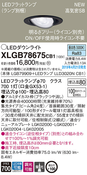 Panasonic LED ¥À¥¦¥ó¥é¥¤¥È XLGB78675CB1