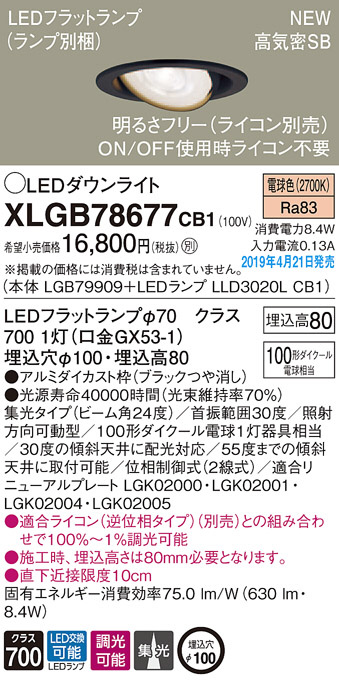 Panasonic LED ¥À¥¦¥ó¥é¥¤¥È XLGB78677CB1