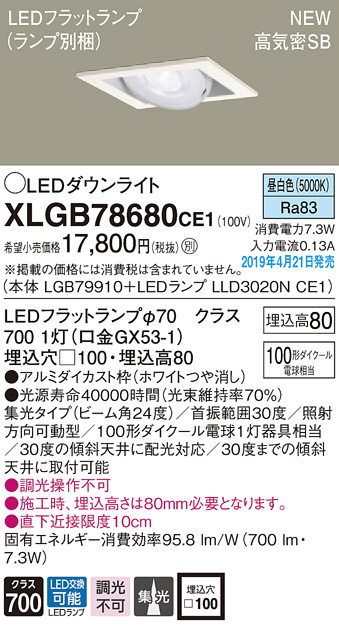 Panasonic LED ¥À¥¦¥ó¥é¥¤¥È XLGB78680CE1