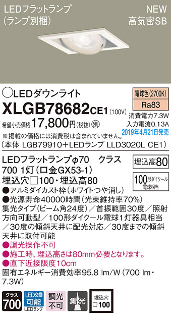 Panasonic LED ¥À¥¦¥ó¥é¥¤¥È XLGB78682CE1
