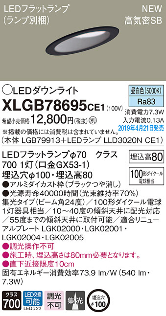 Panasonic LED ¥À¥¦¥ó¥é¥¤¥È XLGB78695CE1