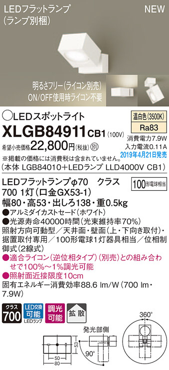 Panasonic LED ¥¹¥Ý¥Ã¥È¥é¥¤¥È XLGB84911CB1