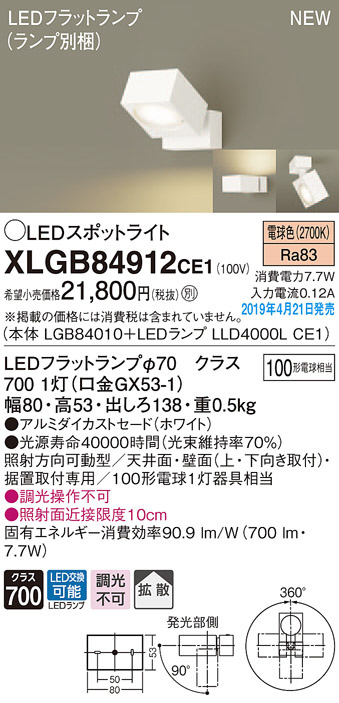 Panasonic LED ¥¹¥Ý¥Ã¥È¥é¥¤¥È XLGB84912CE1