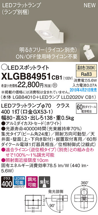 Panasonic LED ¥¹¥Ý¥Ã¥È¥é¥¤¥È XLGB84951CB1