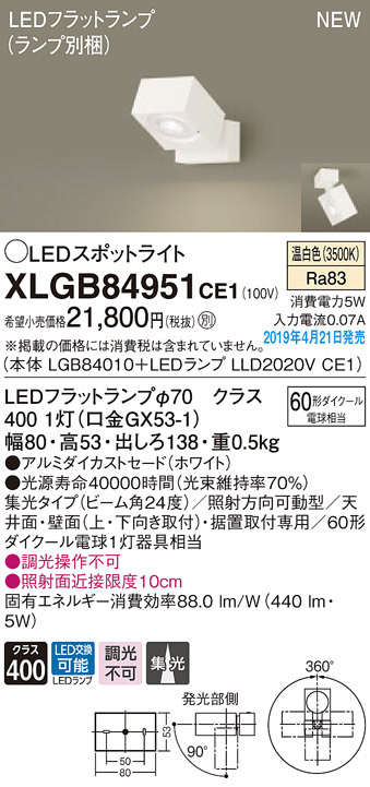 Panasonic LED ¥¹¥Ý¥Ã¥È¥é¥¤¥È XLGB84951CE1