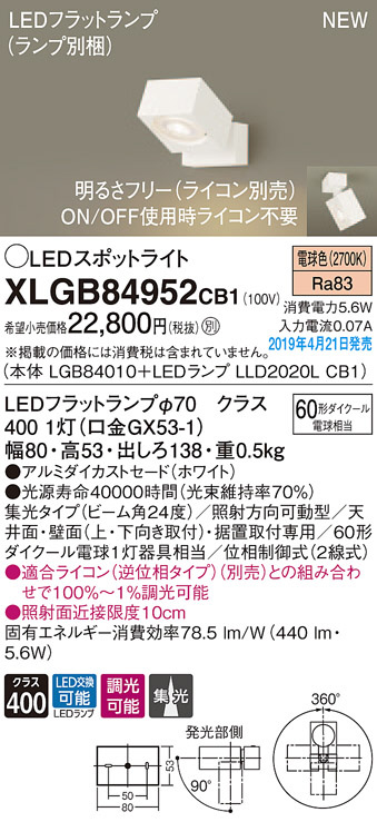 Panasonic LED ¥¹¥Ý¥Ã¥È¥é¥¤¥È XLGB84952CB1