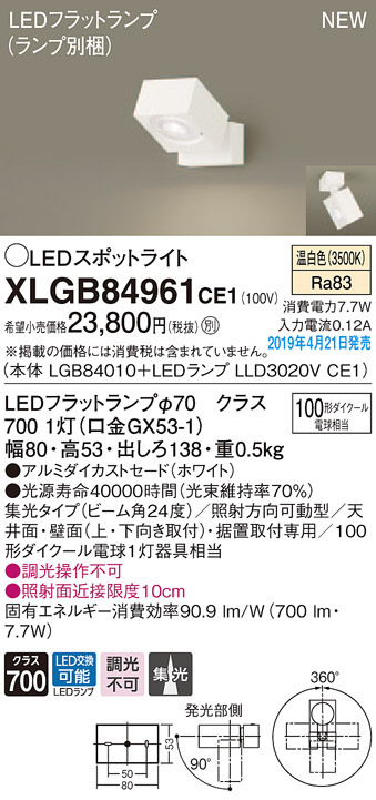 Panasonic LED ¥¹¥Ý¥Ã¥È¥é¥¤¥È XLGB84961CE1