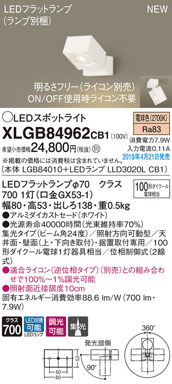 Panasonic LED ¥¹¥Ý¥Ã¥È¥é¥¤¥È XLGB84962CB1