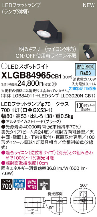 Panasonic LED ¥¹¥Ý¥Ã¥È¥é¥¤¥È XLGB84965CB1