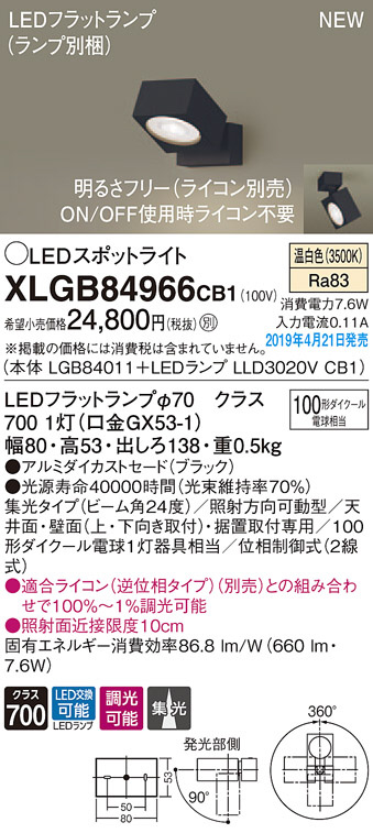Panasonic LED ¥¹¥Ý¥Ã¥È¥é¥¤¥È XLGB84966CB1