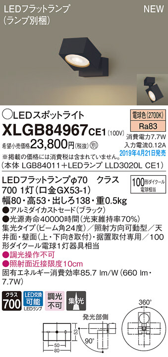 Panasonic LED ¥¹¥Ý¥Ã¥È¥é¥¤¥È XLGB84967CE1