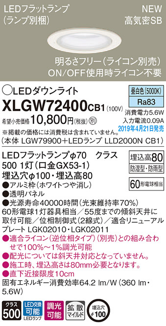 Panasonic LED ¥¨¥¯¥¹¥Æ¥ê¥¢¡¦¥¢¥¦¥È¥É¥¢ XLGW72400CB1