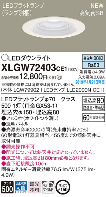 Panasonic LED ¥¨¥¯¥¹¥Æ¥ê¥¢¡¦¥¢¥¦¥È¥É¥¢ XLGW72403CE1
