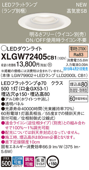 Panasonic LED ¥¨¥¯¥¹¥Æ¥ê¥¢¡¦¥¢¥¦¥È¥É¥¢ XLGW72405CB1