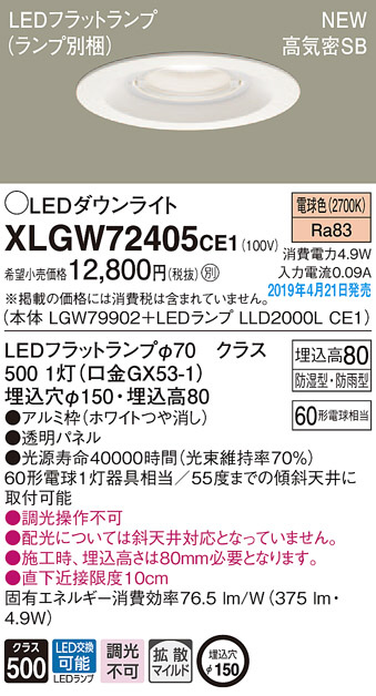 Panasonic LED ¥¨¥¯¥¹¥Æ¥ê¥¢¡¦¥¢¥¦¥È¥É¥¢ XLGW72405CE1