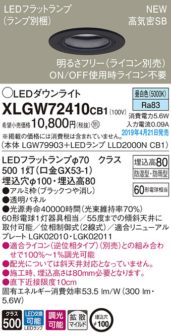 Panasonic LED ¥¨¥¯¥¹¥Æ¥ê¥¢¡¦¥¢¥¦¥È¥É¥¢ XLGW72410CB1