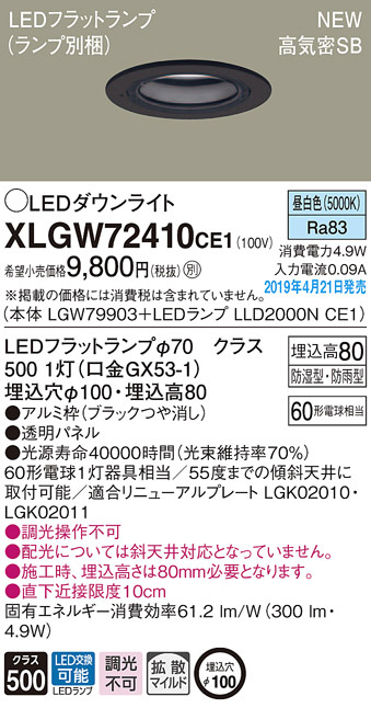 Panasonic LED ¥¨¥¯¥¹¥Æ¥ê¥¢¡¦¥¢¥¦¥È¥É¥¢ XLGW72410CE1