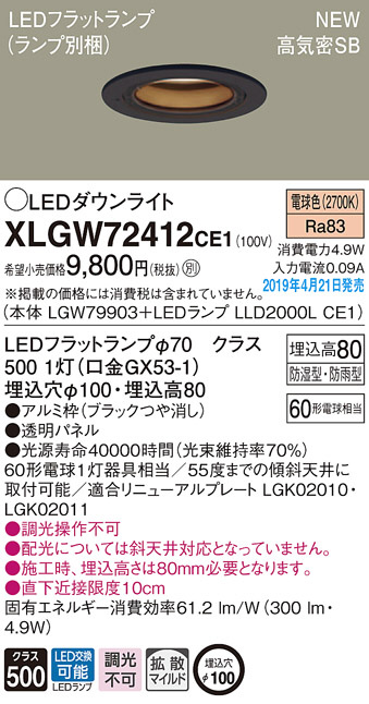 Panasonic LED ¥¨¥¯¥¹¥Æ¥ê¥¢¡¦¥¢¥¦¥È¥É¥¢ XLGW72412CE1