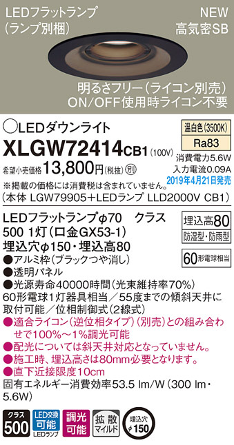 Panasonic LED ¥¨¥¯¥¹¥Æ¥ê¥¢¡¦¥¢¥¦¥È¥É¥¢ XLGW72414CB1