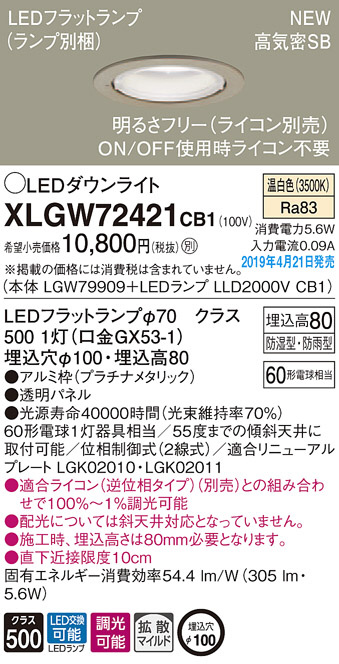 Panasonic LED ¥¨¥¯¥¹¥Æ¥ê¥¢¡¦¥¢¥¦¥È¥É¥¢ XLGW72421CB1