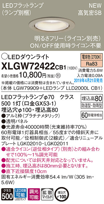 Panasonic LED ¥¨¥¯¥¹¥Æ¥ê¥¢¡¦¥¢¥¦¥È¥É¥¢ XLGW72422CB1