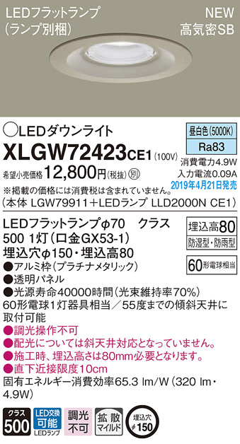 Panasonic LED ¥¨¥¯¥¹¥Æ¥ê¥¢¡¦¥¢¥¦¥È¥É¥¢ XLGW72423CE1