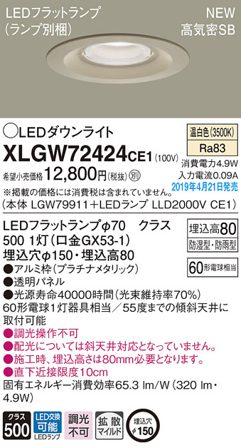 Panasonic LED ¥¨¥¯¥¹¥Æ¥ê¥¢¡¦¥¢¥¦¥È¥É¥¢ XLGW72424CE1