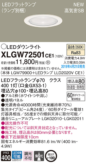 Panasonic LED ¥¨¥¯¥¹¥Æ¥ê¥¢¡¦¥¢¥¦¥È¥É¥¢ XLGW72501CE1