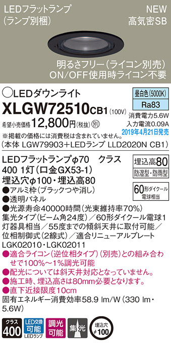 Panasonic LED ¥¨¥¯¥¹¥Æ¥ê¥¢¡¦¥¢¥¦¥È¥É¥¢ XLGW72510CB1