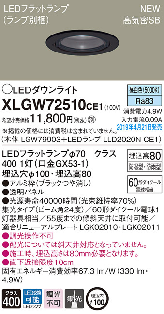 Panasonic LED ¥¨¥¯¥¹¥Æ¥ê¥¢¡¦¥¢¥¦¥È¥É¥¢ XLGW72510CE1